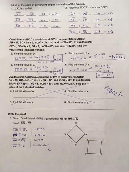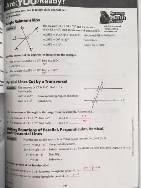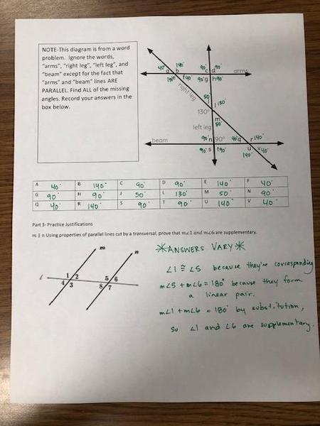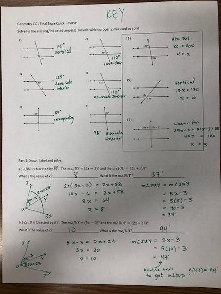 Answer Key: Unit 1 (Angle Relationships)