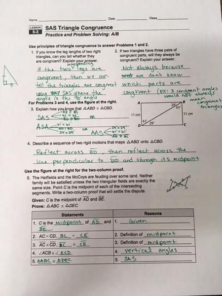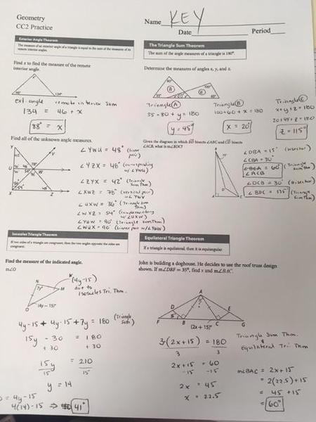 Answer Key: Unit 3 (Triangles)