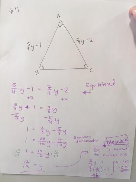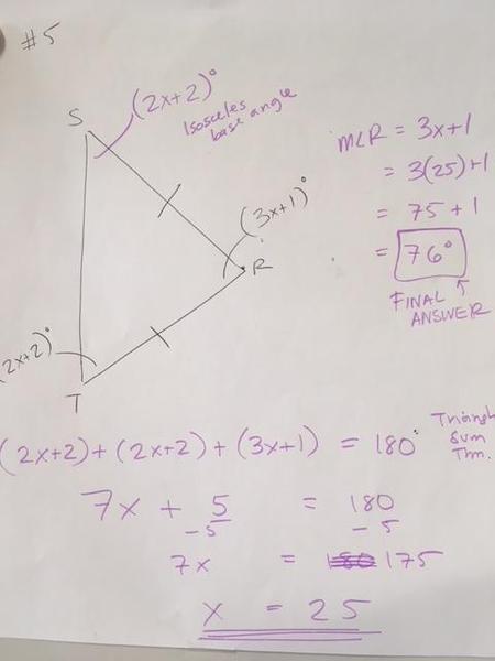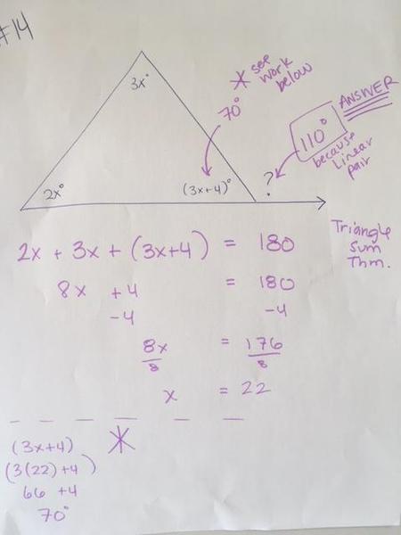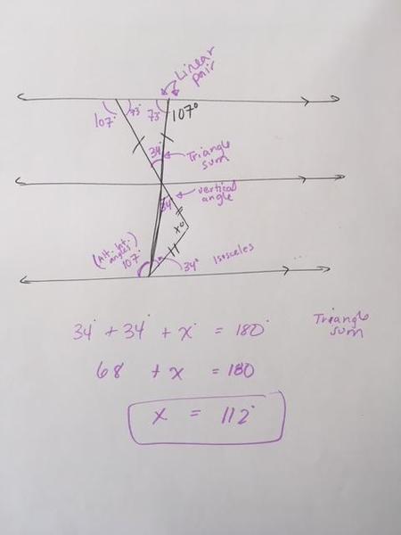Class work - Challenge problem - finding unknown angles using parallel lines cut by a transversal